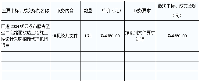 G324線云浮市腰古至逕口段路面改造工程施工圖設(shè)計采購招標代理機構(gòu)項目的中標、成交公告